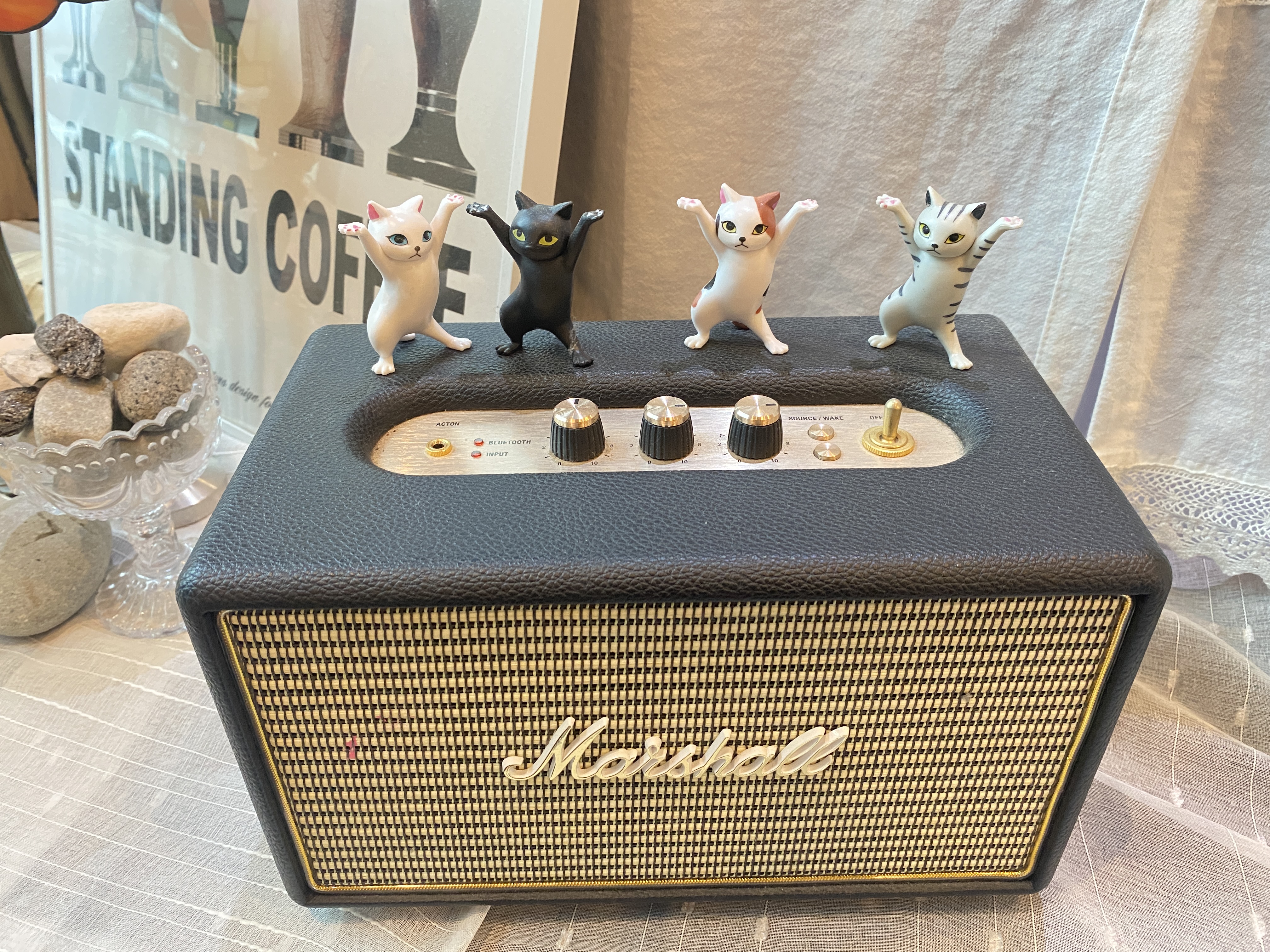 스피커 위에서 춤을 추는 고양이 피규어들이 너무 귀엽네요.