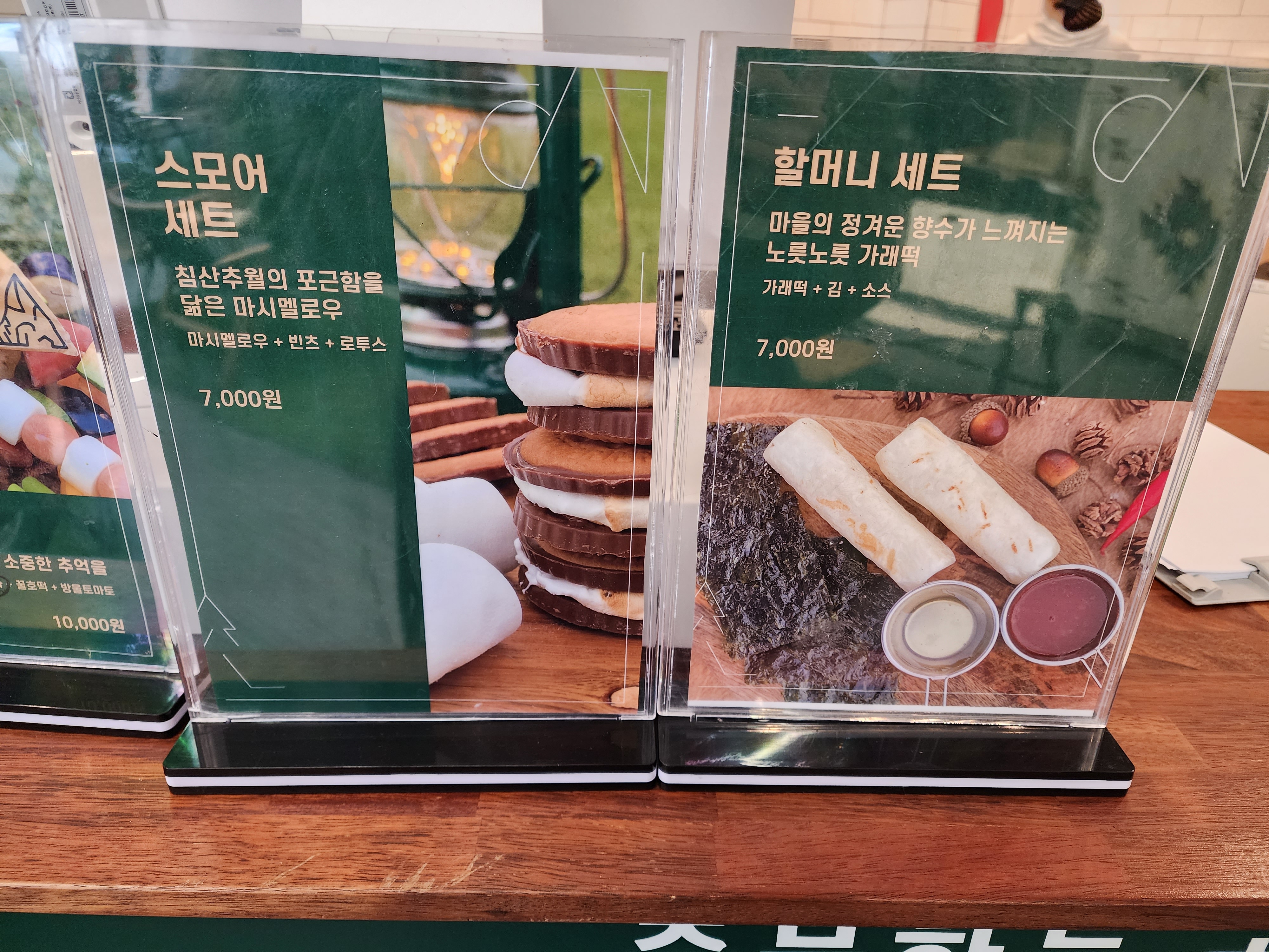 가래떡을 구워 먹으라고 가스버너와 함께 주셨는데 제가 실수로 다 태워버렸어요. 가래떡 구우실 때 최대한 약한 불로 천천히 익혀주세요. 음료는 라테보다 오미자 에이드 추천합니다. 새콤하면서 달달한 게 맛있었습니다. 직원 분께서 추천해 주셔서 주문한 건데 잘 선택했어요!