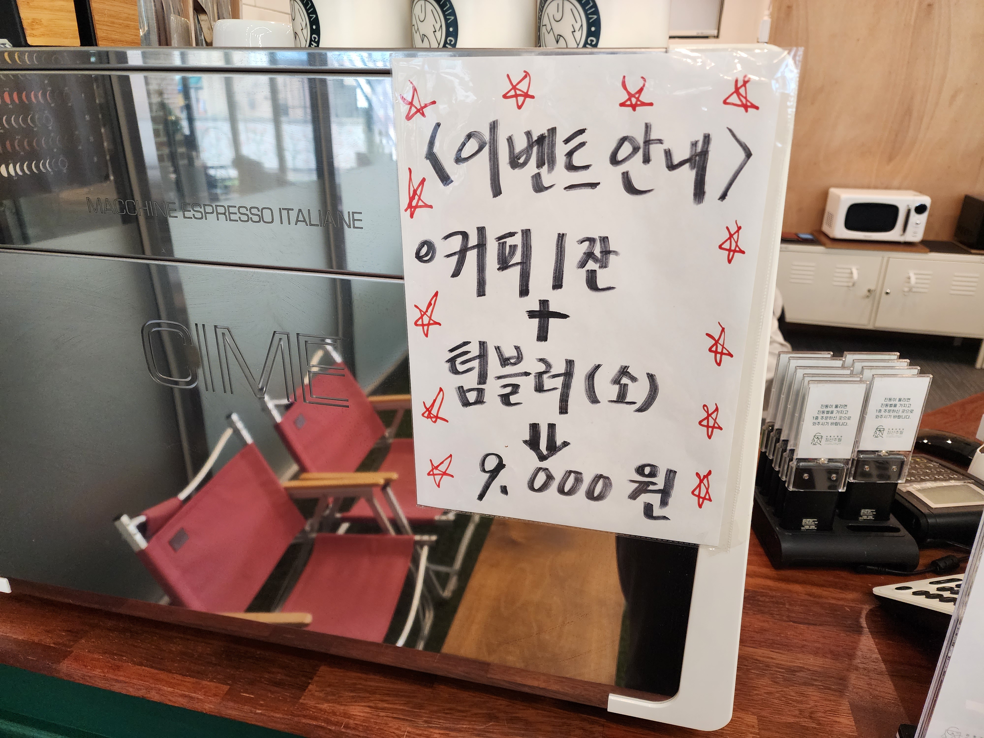 아메리카노 1잔이 3천 원인데 텀블러와 같이 세트로 구매를 하시면 9천 원이라고 합니다.