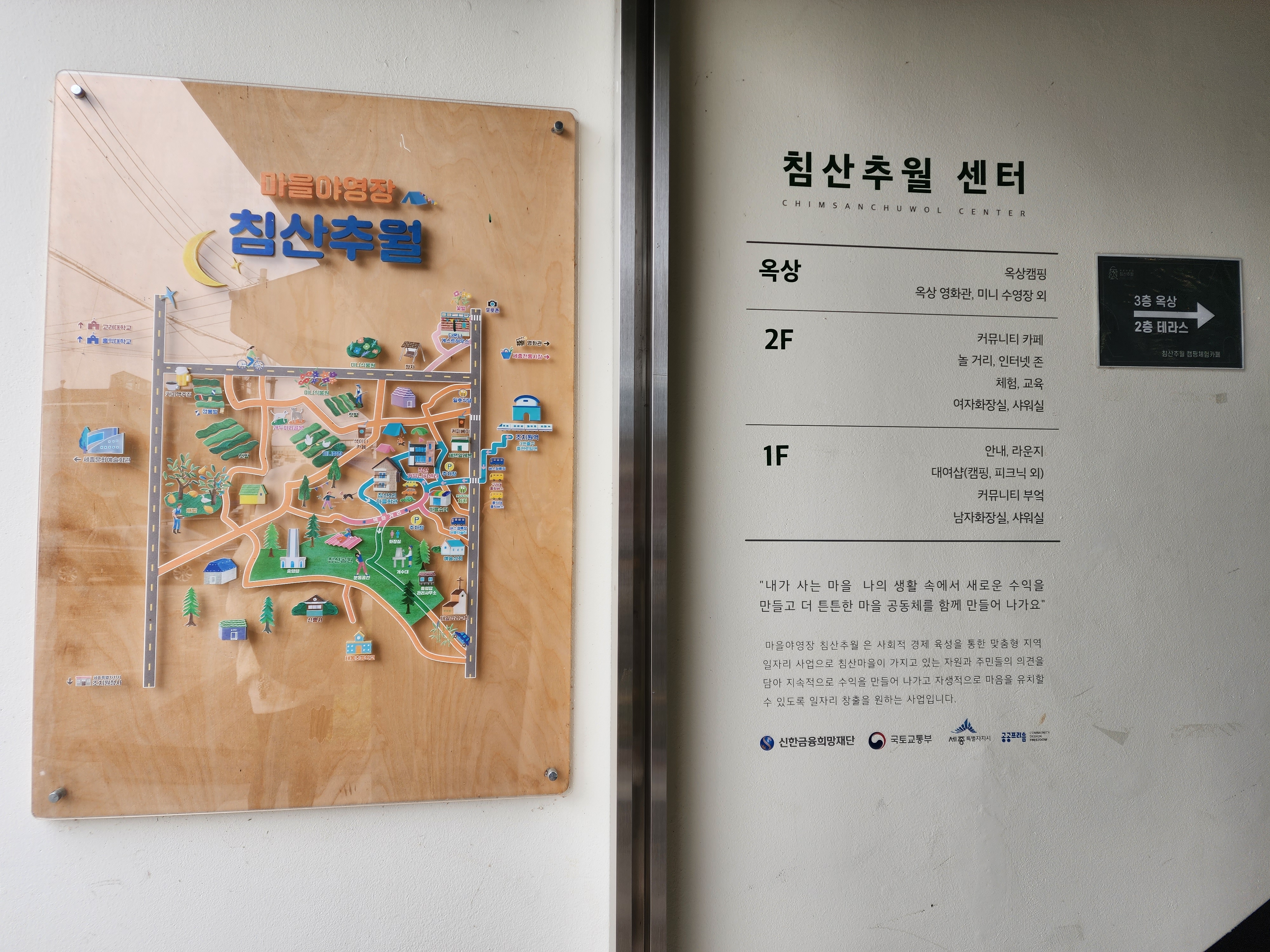 오늘은 세종 조치원에 위치한 캠핑 체험을 할 수 있는 이색적인 카페를 소개하려고 해요. "침산추월"은 21년 10월 14일에 첫 개장을 했고 지역 맞춤형 일자리를 만들기 위해 국토 교통부에서 주관하고 신한 금융 희망재단에서 지원하는 사회적 경제 육성 시범 사업이라고 합니다. 19년 11월부터 침산리 주민들을 대상으로 사업설명, 교육 등을 거쳐 "침산에서 바라본 가을 달의 모습"이라는 뜻을 담아 "침산추월"이라고 만들었다고 해요. 캠핑 체험을 할 수 있는 카페라고 하니 궁금해서 다녀왔습니다. 1층부터 3층까지 있는 건물이고 맨 위층은 옥상이에요.