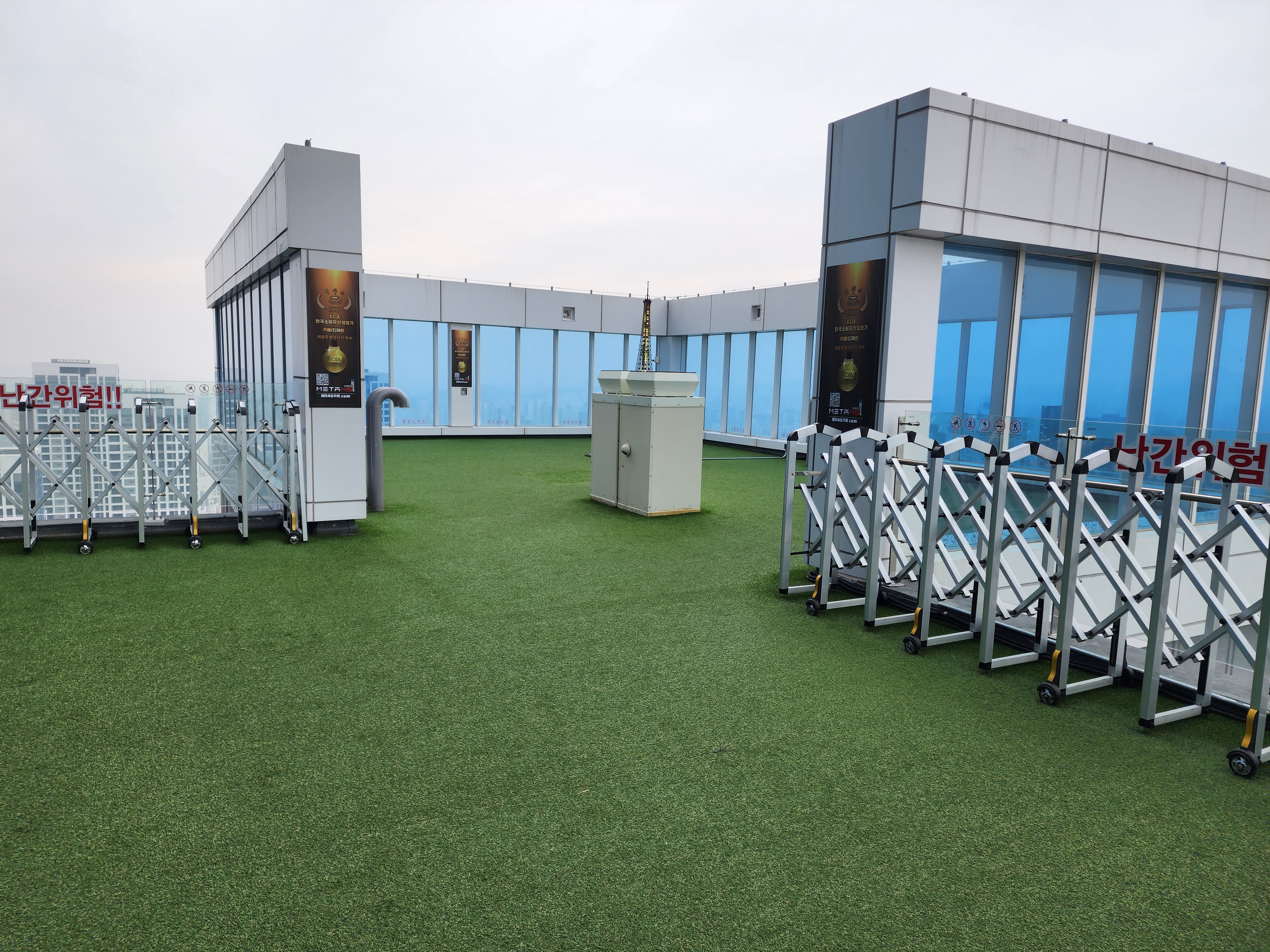 문을 열고 나가면 보이는 테라스에는 포토존이 있습니다. 많은 분들이 사진을 찍고 계셨는데, 춥고 미세먼지와 안개로 사진을 제대로 찍지 못해서 아쉬움이 남았어요.