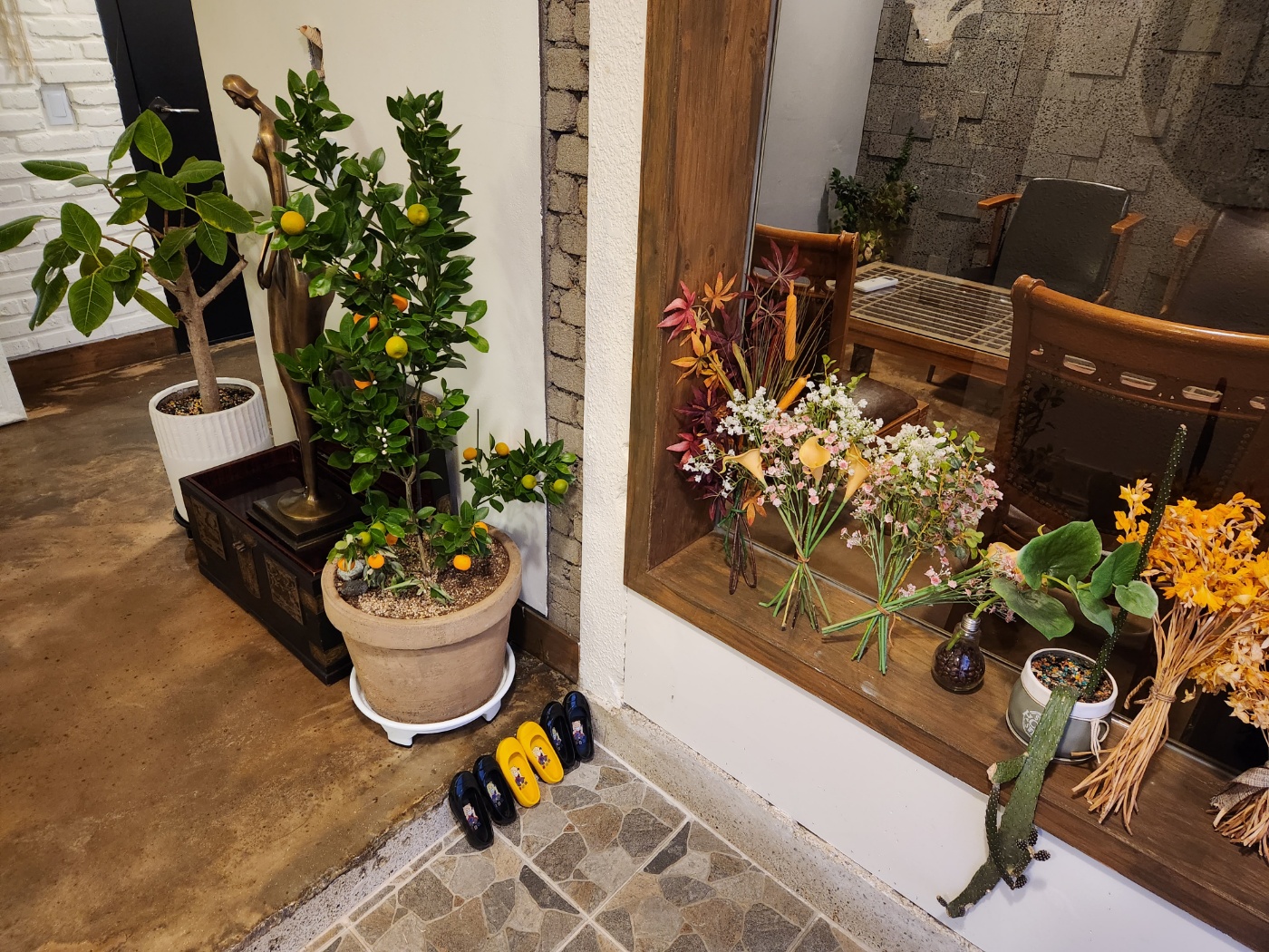 군데군데 보이는 조화들과 화분들이 마치 봄을 생각나게 했어요. 아직 겨울인데 마음만은 벌써 봄이 온 것만 같았습니다.